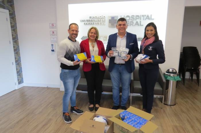 HOSPITAL GERAL DE CAXIAS DO SUL - COMUNIDADE REALIZA AÇÕES DE SOLIEDADRIEDADE EM PROL DO HG - No dia 16 de abril, quinta-feira, o HG, recebeu a doação de EPI´s do Rotary Club Caxias do Sul Cinquentenário. O Clube com apoio do Distrito 4700, associados do clube e amigos adquiriram e doaram ao HG, 30 caixas de luvas, 200 máscaras comuns e 80 máscaras PFF2. As doações foram entregues ao diretor geral do HG, Sandro Junqueira, pelo Pres.do Clube Geison Fernando Vidor, pela responsável pela área de projetos, Jandira Pauletto. As doações seráo destinadas para auxiliar na proteção dos funcionários para combate no coronaqvírus no HG.
