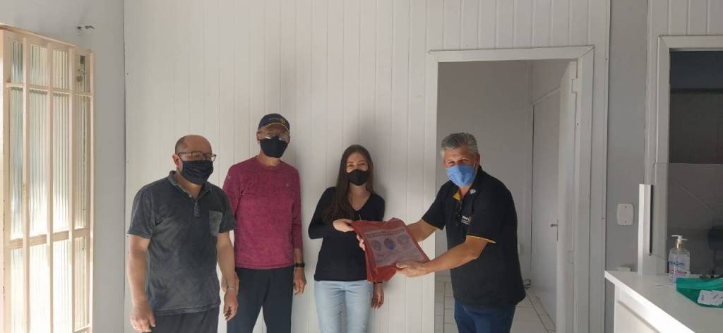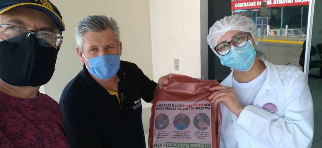 Distribuição das embalagens para descarte de máscaras e luvas não entregues na coleta seletiva, recebidas do Distrito e entregues no Hospital e Postos de Saúde Municipais.