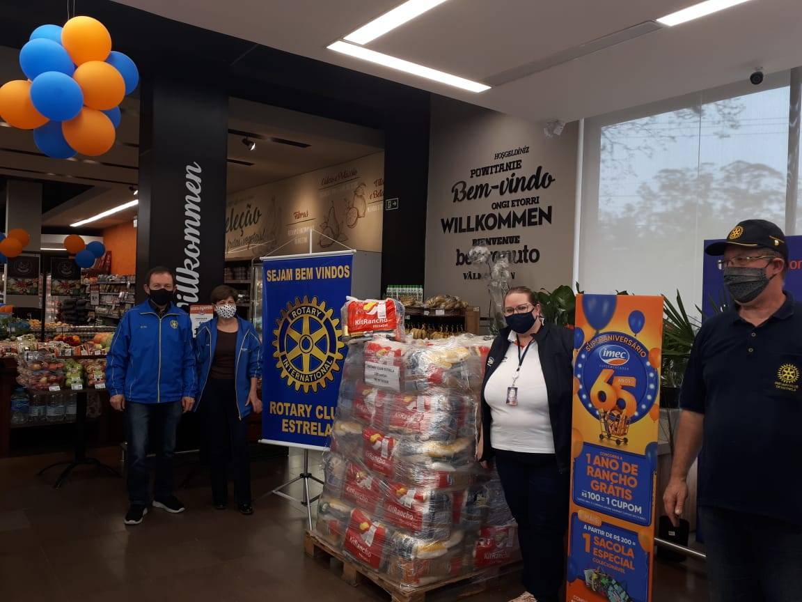 O Rotary Club de Estrela, em parceria com Imec Supermercados, fez entrega de 100 cestas básicas ao CRAS, em benefício às famílias necessitadas, em decorrência do Covid-19.